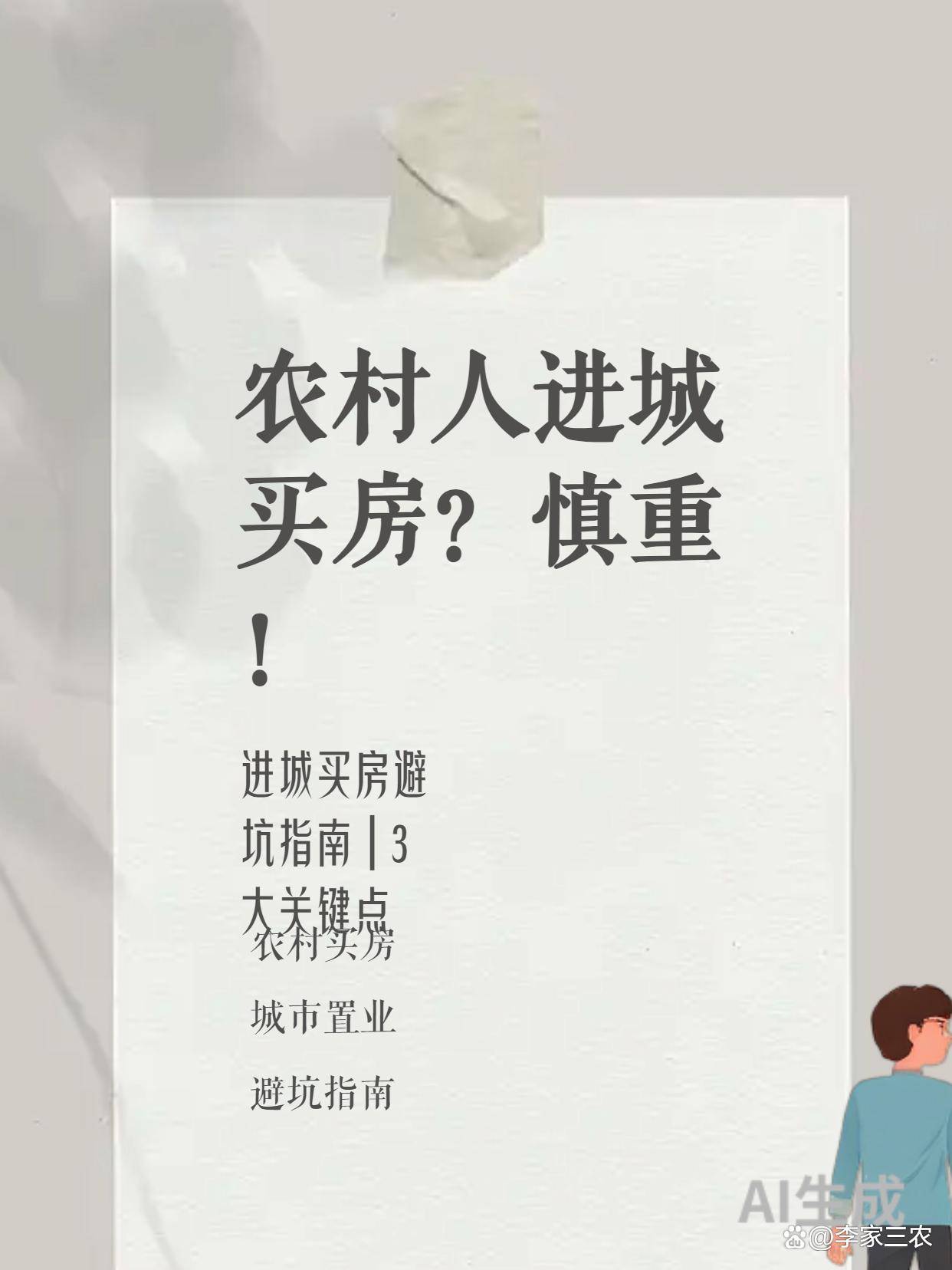 农村人进城 买房?慎重 I 进城买房避 坑指南 | 3 本學展 城市置业 避坑指南 村口小卖部旁,王哥蹲在台阶上抽着烟,手里攥着张县城楼盘宣传单:"你说咱要不要在县城买房?孩子明年上小学,去城里读能好点,可又怕买了房供不 起,以后房子还贬值。" 旁边择菜的李婶也搭话:"可不是嘛!我侄子去年在市里买了高层,现在月供 3000 多,工作不稳定,天天愁得睡不着。听说现在买房的人少了,以后高层可 能成贫民窟,这钱要是砸进去,不是打水漂了?" 最近不少农村人都在纠结进城买房的事,一边是孩子上学、看病方便的诱惑,一边是购房率下跌、人口下滑的担忧。今天就用大白话给大伙讲清楚,农村人 到底该不该进城买房,哪些情况能买,哪些情况要慎买,再说说要避开的坑。 国家统计局 2025 年 1-10 月数据(中国政府网可查):全国商品住宅销售面积同比下降 8.2%,其中三四线城市下降 12.5%,县城楼盘去化周期平均达 28 个 月(超过 18 个月就算供过于求); 第七次全国人口普查及后续年度报告(国家统计局官网):2021-2025 年全国总人口年均减少约 80 万人,县域常住人口平均下降 3.1%,不少县城出现 "人 口外流、房子 ...