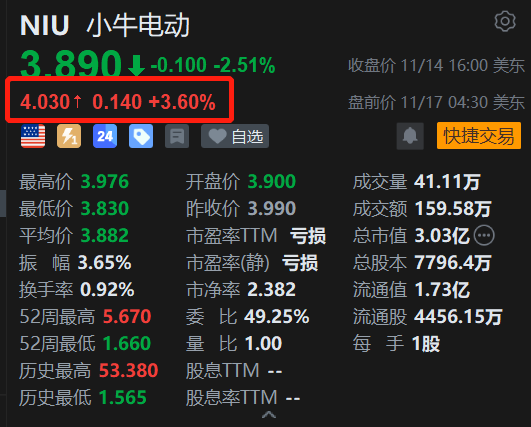 美股异动丨小牛电动盘前涨3.6% Q3业绩增长、每股收益扭亏
