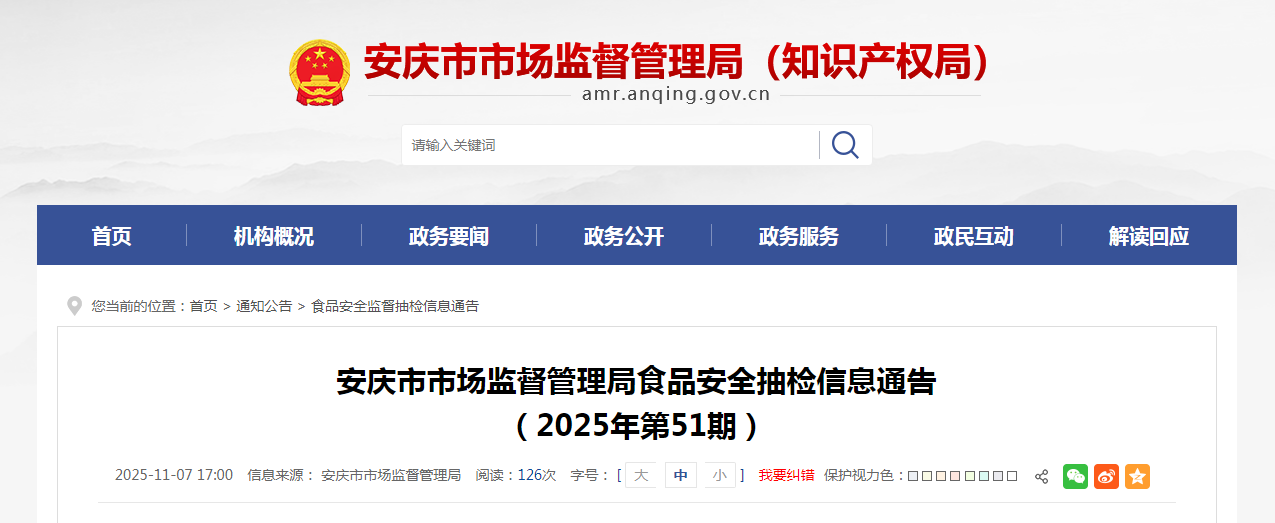 安徽省安庆市市场监督管理局食品安全抽检信息通告(2025年第51期)