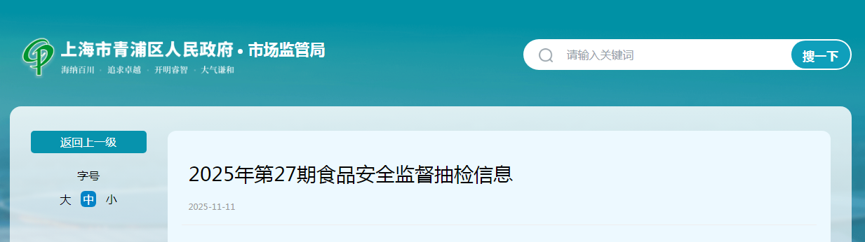上海市青浦区市场监督管理局2025年第27期食品安全监督抽检信息