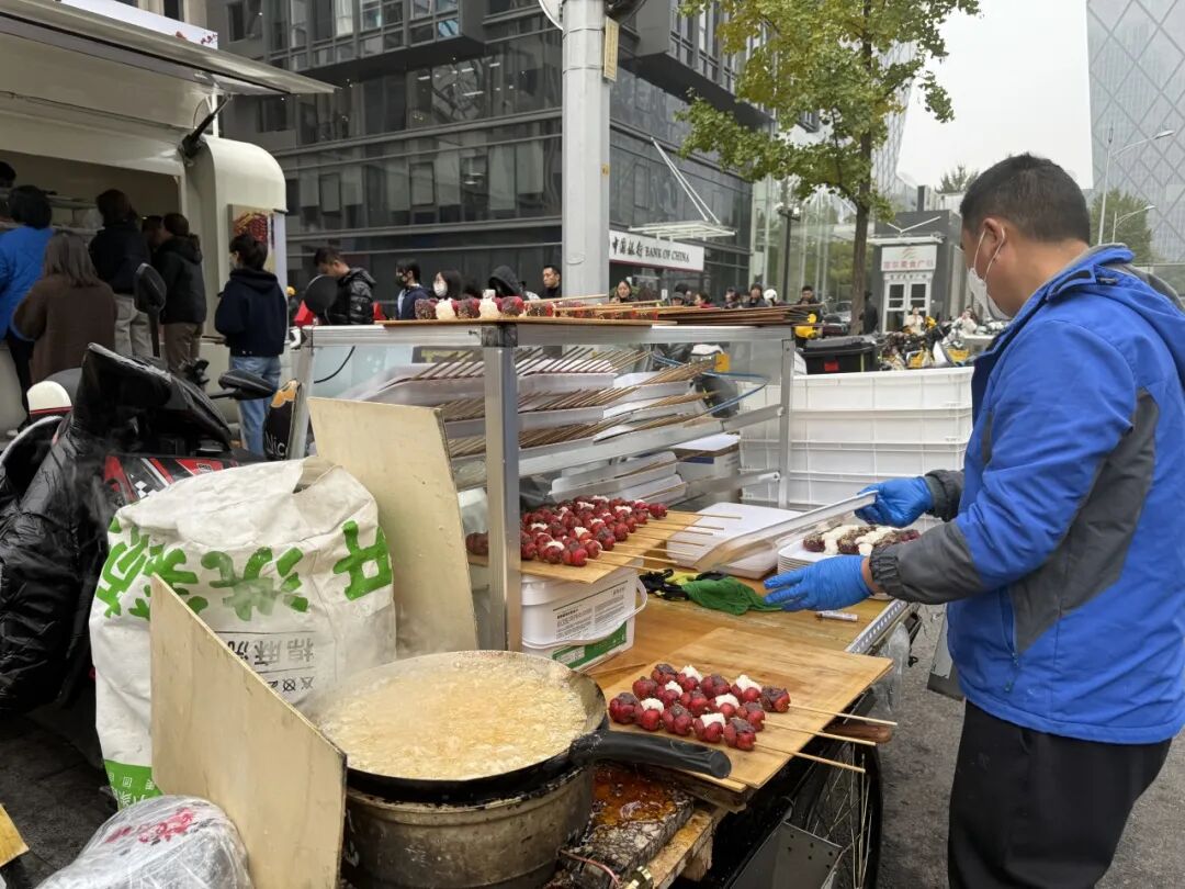 不在这里上班的人,谈到CBD食物大多只有刻板印象:星巴克、以大裤衩为背景的网红餐厅、商务宴请。即使是工作在这里的人,对食物的幸福感也不 算很高。一位媒体朋友的总结是"班味太重",一位金融行业的朋友表示不太熟悉,因为她每天都吃单位食堂。 但这个冬天,金台夕照地铁口——附近有国贸商城、嘉里中心、财富中心等写字楼和商圈,一个糖葫芦路边摊成为网红,偶尔排队长达2个小时。 烟火与网红 正常情况下,很少有人会为了美食来到国贸。 很多人是特意赶来的。我在10月底的一个工作日午后加入到排队,前面的顾客支付了108元,提着一个大袋子满载而归。刚轮到我,一位看起来50多岁的 女性凑到摊前来问:是小红书上那家糖葫芦吗? 有人从楼上视角俯拍了一张雾霾中的长队,感到不解:他们都不用上班吗? 她的困惑情有可原。因为CBD地区有两家糖葫芦都在小红书上火了,一个是路边摊平价版,招牌的糯米夹心糖葫芦8元一串,一个是小门店版,招牌奶皮 子糖葫芦26元一串——这才是CBD风格的定价。 CBD路边摊糖葫芦现场制作 当均价两三百的CBD高级餐厅们通过低价团购套餐拼命引流时,CBD版"鸡排哥"们却在发愁生意好到忙不过来。 如果把地域拓展到泛CBD地区, ...