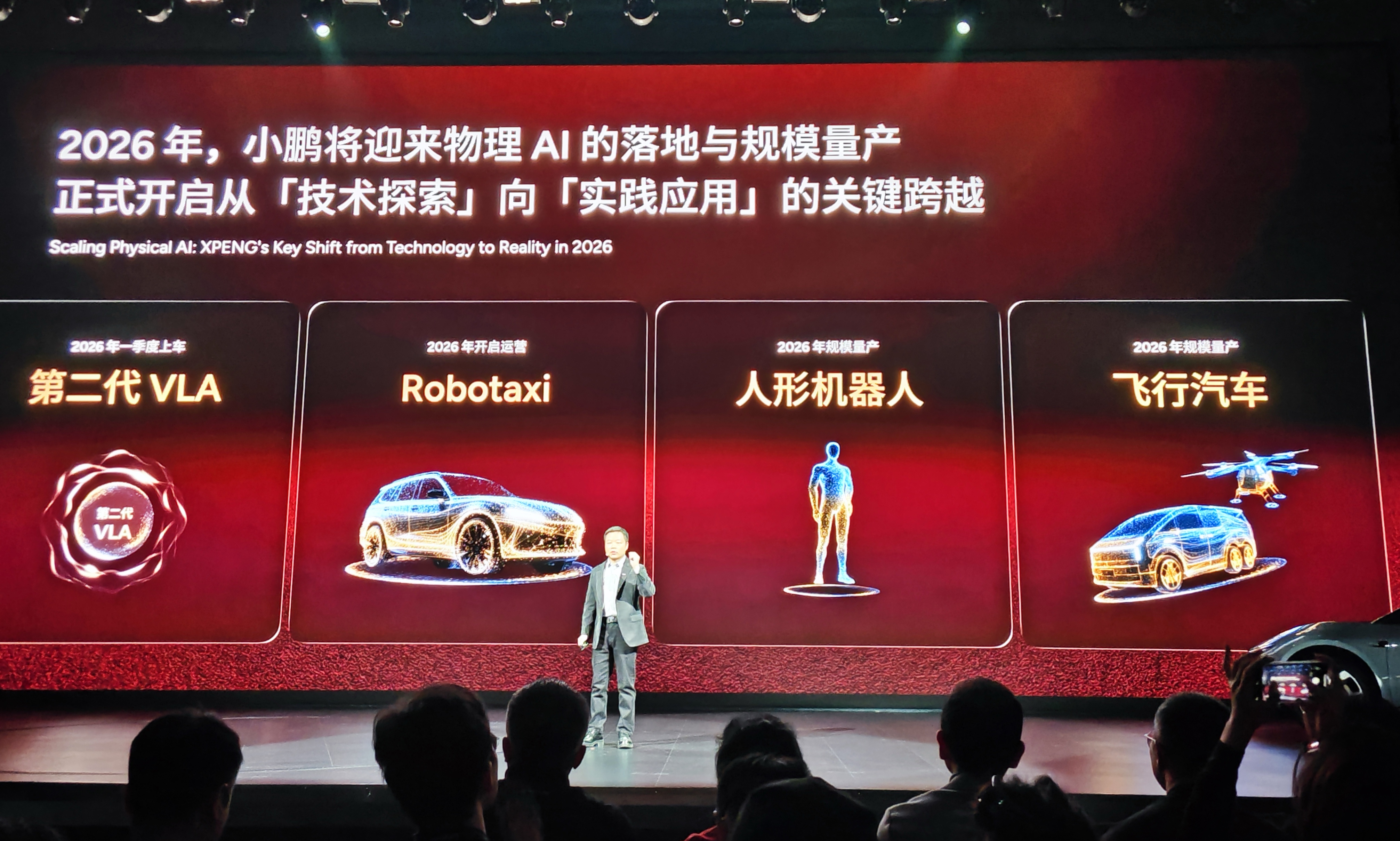 小鹏的动作,确实要比电车通想象的还要快。 新年伊始,当其他新势力还在总结过去一年的成绩时,小鹏就举行了四车齐发的新车发布会,而且现场还宣布人形机器人、飞行汽车会在今年实现规模量 产,Robotaxi也会在今年开启运营,尽显其向「物理AI公司」转型的野心。 图源:电车通摄制 不过抛开这些「新物种」,国内市场最关注的依然是汽车板块。2025年全年,小鹏卖出了429445辆,创下了历史新高,而据「36氪汽车」报道,小鹏在内部 战略会上确定了今年的销量目标:55-60万辆,比去年累计销量同比增加约28%。 这意味着,小鹏平均每月至少要卖出45834辆。要知道,2025年小鹏的月均销量约为35787辆,这相当于每个月多卖一万辆,且都不能掉链子。 这一数字的分量不言而喻。放眼去年的市场,除了比亚迪、吉利等传统巨头,仅有零跑和鸿蒙智行达成了这一规模。这两家车企的共性在于,都拥有至少三 款爆款车型构建的坚实基本盘。 反观小鹏,尽管MONA M03和P7+表现稳健,且通过「一车双能」策略拓宽了受众,但仅靠这两款车和现有改款车型,要撑起超4.5万辆的月销显然独木难 支。 要想完成这一「不可能的任务」,小鹏的底牌全放在今年——四款 ...