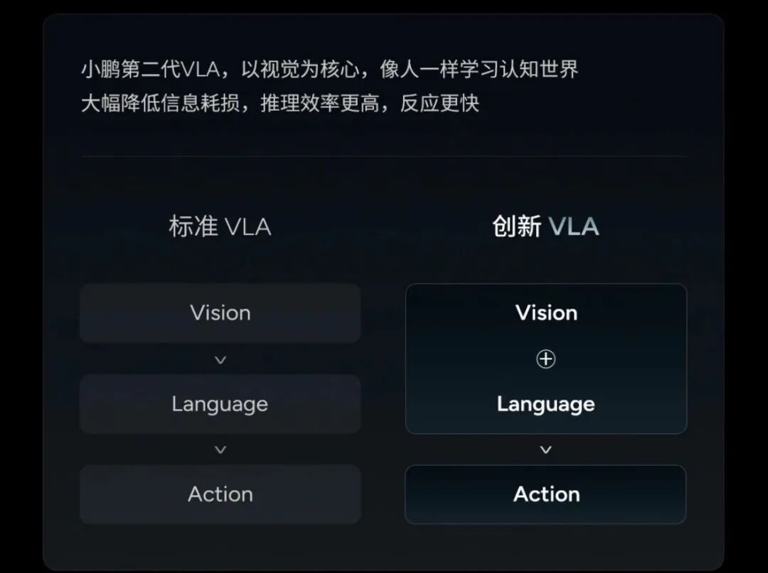 11月5日,小鹏汽车在其新总部举办了以"涌现"为主题的2025小鹏汽车科技日活动。该活动聚焦"物理AI",发布了小鹏第二代VLA(视觉-语言-动作)大 模型、小鹏Robotaxi、全新一代人形机器人IRON、飞行汽车4项重磅产品。 小鹏汽车董事长何小鹏表示,小鹏汽车在过去6年的科技日活动上提出对未来的憧憬,正在逐渐成为现实。同时,AI正在创造全新的可能。 何小鹏表示,小鹏汽车第二代VLA大模型,将面向全球商业伙伴开源;Robotaxi走向更大规模、走向世界,必须要有整车厂亲自去做;目前人形机器人进 入工厂"拧螺丝"或进入家庭做家务,仍不是最佳商业应用场景;2026年,小鹏将推出3款Robotaxi。 11月5日,小鹏汽车发布小鹏汽车第二代VLA大模型。 "小鹏第二代VLA大模型率先开启了物理世界模型的新范式,是继端到端、标准VLA大模型后,智能辅助驾驶的又一次突破。"何小鹏介绍,小鹏第二代 VLA大模型打破行业标准,去掉语言转译,以视觉为核心。 图片来源:小鹏汽车微信公众号 在会后的采访中,何小鹏进一步表示:"第二代VLA大模型,实际是将大模型运行中的语言,变成更适合物理世界的语言,大幅降低信息损耗,推理效率 ...