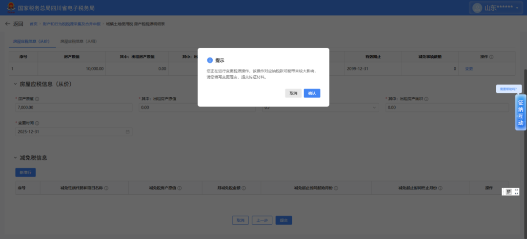 1、我单位在"财产和行为税税源采集及合并申报"模块下,修改房产税税源房产原值时,提示需上传佐证材料,怎么办? 修改税源应税信息时,系统增加了修改后的房产原值数据与当前值的比对校验,若低于当前值一定比例,系统弹出提示信息,请按提示信息填写变更理 由,并提交佐证材料。 附:①若维护房源从租应税信息,修改申报租金收入小于等于当前值一定比例时,系统弹出提示信息,需填写变更理由,提交佐证材料: ②修改土地应税明细中土地面积小于等于当前值一定比例时,系统弹出提示信息,需填写变更理由,提交佐证材料: 2、我单位免退税申报进行报关单导入后,在"数据管理"中的"待处理数据"下,"待确认汇率数据"有异常提示,怎么办? | 3 全国统一规范电子税务局 3 山东 | | | | | | | | | | | 8 Breakfart | | | | --- | --- | --- | --- | --- | --- | --- | --- | --- | --- | --- | --- | --- | --- | | 返回 首页 > 免退税申报 | | | | | | | | | | | | | 第五章 | | | | ▽ 导入报关单 ...