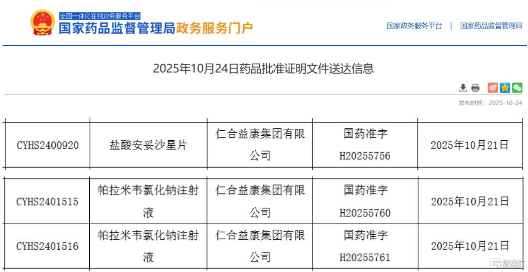 Core Insights - Renhe Yikang Group has obtained approval for the first generic version of the antibiotic drug, Saline Anlotinib Tablets, which is a significant milestone in the Chinese pharmaceutical market [4][6] - The company has also received approval for Palivizumab Sodium Injection, marking it as the second domestic company to produce this flu treatment [9][10] Group 1: Saline Anlotinib Tablets - Saline Anlotinib Tablets are indicated for treating chronic bronchitis acute exacerbations caused by Klebsiella pneumoniae and acute pyelonephritis and cystitis caused by Escherichia coli [4] - The drug is recognized as China's first innovative quinolone antibiotic with complete independent intellectual property rights and is included in national key new products [4] - Sales of Saline Anlotinib Tablets are projected to exceed 20 million yuan in 2024 across all terminal hospitals [4] Group 2: Palivizumab Sodium Injection - Palivizumab Sodium Injection is a new antiviral drug effective against both influenza A and B types, and it is the first intravenous neuraminidase inhibitor in China [9] - The drug achieved sales exceeding 1 billion yuan in 2024, with a year-on-year growth of 2.44%, and sales in the first half of 2025 are expected to surpass 600 million yuan [9] - Renhe Yikang has become the second domestic company to receive approval for this drug, following Qidu Pharmaceutical's approval in July 2025 [10][13] Group 3: Company Achievements - Renhe Yikang has received approval for over 70 drug varieties, with 15 of them being the first to pass the evaluation [13] - In the current year, the company has secured 19 drug approvals, with Saline Anlotinib Tablets being the only first generic approved [13]