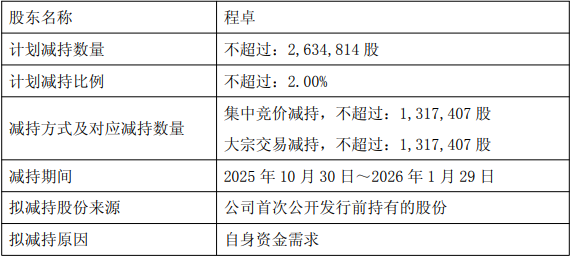 截至公告披露日,芯碁微装控股股东、实际控制人、董事长程卓直接持有公司股份36,787,490股, 占公司总股本的27.92%。上述股份均来源于公司首次公开发行前取得的股份,并已上市流通。 因自身资金需求,程卓拟通过集中竞价和大宗交易相结合的方式减持不超过2,634,814股公司股份, 占公司股份总数比例不超过2.00%,将于减持计划公告披露之日起15个交易日后的3个月内进行。 其中:拟通过集中竞价方式减持的,任意连续90日内减持总数不超过公司股份总数的1%;拟通过 大宗交易方式减持的,任意连续90日内减持总数不超过公司股份总数的2%。若在减持计划实施期间公 司发生派发红利、送红股、转增股本、增发新股或配股等股本除权、除息事项的,将根据股本变动对减 持数量进行相应调整。 中国经济网北京10月9日讯 芯碁微装(688630.SH)9月30日晚间发布控股股东、实际控制人减持股份 计划公告。 芯碁微装募集资金总额为4.60亿元,扣除发行费用后,募集资金净额为4.16亿元。芯碁微装最终募 集资金净额比原计划少5708.17万元。芯碁微装2021年3月29日披露的招股说明书显示,公司拟募集资金 4.73亿元,其中,2.0 ...