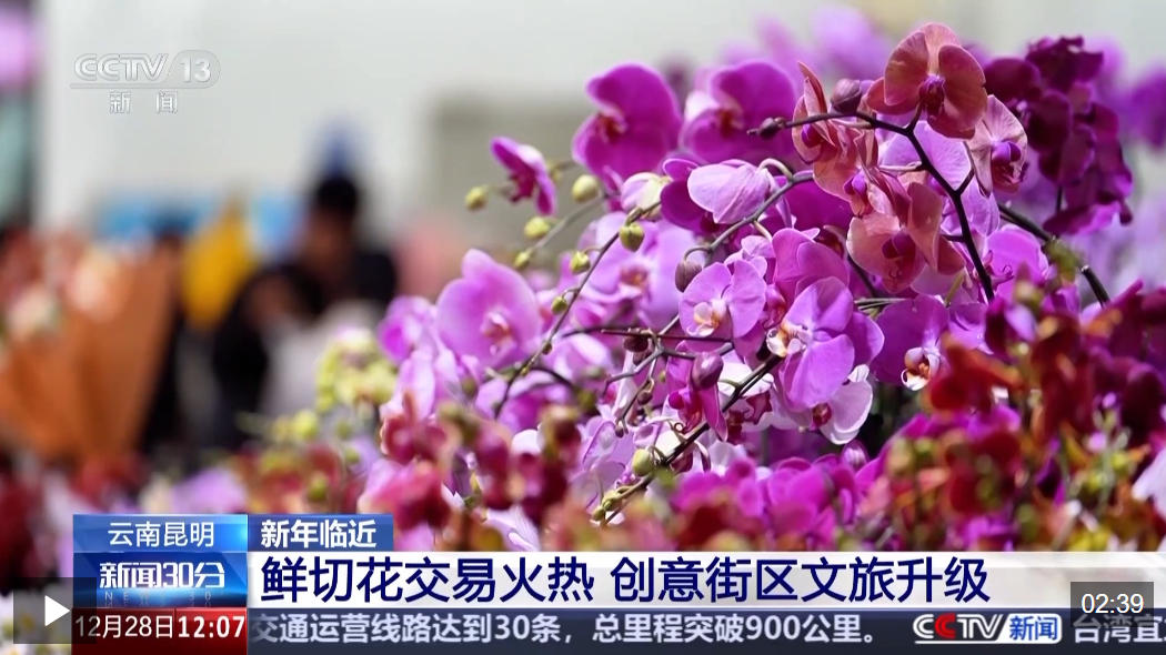 新年即将到来,人们纷纷开启逛花市、买鲜花模式,期盼新年新气象。年宵花陆续上市,销量逐渐迎来高峰,花卉市场也备足了货源。新品种、新搭配,更 多种类的鲜切花、盆栽随着日益便利的航空物流发往全国各地,消费者选择更多,鲜花市场活力更足。 云南昆明 鲜切花交易火热 在亚洲最大的鲜切花交易中心云南昆明斗南花卉市场,每天上市交易的鲜切花品种超过1600个。红掌、冬青,以及应景的蝴蝶兰、大花惠兰等兰草类植物, 最受青睐。今年,这里的一条创意文化街区正式开放,市民游客不仅可以在斗南花市买花,更可以有新的游赏体验。 新疆 南方鲜花24小时锁鲜到天山 在乌鲁木齐天山国际机场,近期每天都有飞机搭载着各类鲜花从云南等地飞来,虽然相隔三千多公里,但鲜花一路锁鲜到达新疆的花市不到24小时。在新疆 最大的鲜花集散地,市场里品种肉眼可见的丰富了。 贵州毕节 高山冷凉花卉畅销 在贵州毕节百里杜鹃管理区,高山冷凉杜鹃迎来销售旺季。花卉科技园里,工人们正对花卉打理、管护,准备打包、装车。为应对市场需求,基地提前开启 催花作业,培育的优质花卉品种远销国内外。 花卉企业负责人 周娟:现有高山杜鹃10万余盆,120余个品种。入冬季以来到元旦节前,通过线上 ...