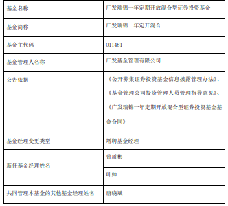 广发瑞锦一年定开混合增聘曾质彬与叶帅