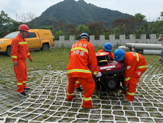 ▲7月31日,在北京密云区大城子镇沙岭村附近,国网北京密云供电公司抢修人员搬运 应急发电机,做好直升机运送准备。李艳娜/摄 "一、二,起!"7月31日13时50分,在北京密云区大城子镇沙岭村附近,国网北京密云 供电公司4名抢修人员将一台发电机抬至旁边空地约4米见方的大型白色网兜上。身穿橙色工 作服的国网空间技术公司特种作业中心技术人员迅速用绳索固定发电机并完成打包。 14时10分,伴随着震耳欲聋的螺旋桨轰鸣声,一架红色直升机由远及近,从100米高空 中缓缓降落,稳稳地悬停在空地上方两米处,工作人员迅速将装有发电机的网兜通过30米长 的吊索连接到直升机机腹。2分钟后,直升机缓缓升空,赶往此次运送的目的地——大城子 镇北沟村。 ▲7月31日,国网北京电力联合国网空间技术公司首次使用直升机为受灾地区运送应急 电力物资。图为电力技术人员正在指挥直升机停靠,开展发电机运送工作。李艳娜/摄 "我们今天凌晨接到直升机运送任务后,从周边调配了一台13千瓦的应急发电机,满油 的状态下可以连续工作10小时左右,能为北沟村村委会等重点区域提供应急供电,可以满足 救灾指挥和村民通讯联络等基本用电需求。"国网北京密云供电公司运检部专责 ...