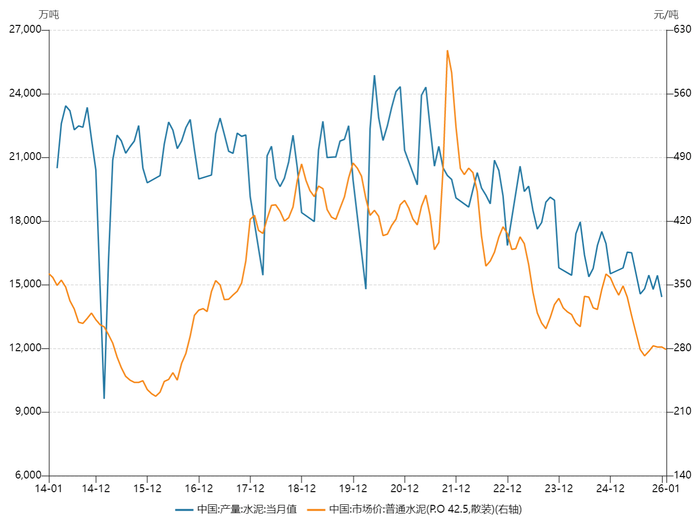 建材行业作为典型的早周期行业,其景气度回升往往领先于宏观经济复苏的确认。在当前经济企稳初期,基建投资的持续发力与地产竣工的边际改善形成需 求双轮驱动,而原材料成本(能源、化工原料)处于相对可控区间,行业或迎来"量增价稳"的甜蜜期。 短周期——天气寒冷或导致水泥产量收缩 从短周期看,水泥熟料煅烧过程需维持窑炉高温(约1450℃),极端低温会增加能耗成本并影响设备安全;同时,原材料开采受冻土影响,物流运输因冰雪 天气受阻,导致上游供给物理性受限。 另一方面,当前水泥行业执行严格的"错峰生产"政策,北方地区冬季停产时长普遍达4-5个月。以华北为例,2024-2025年采暖季水泥熟料企业限产力度达 60%以上,这虽然是环保政策驱动,但与天气严寒形成共振,进一步压缩实际产量。 以华东为例,冬季错峰停窑时间延长至80-100天,熟料库存始终处于低位。当供给端收缩幅度超过需求下滑时,价格获得支撑。2024年四季度,尽管进入传 统淡季,华东地区水泥价格较年内低点反弹超20%,验证了供给约束的有效性。 与之形成鲜明对比的是,冬季为传统施工旺季(尤其是华南),若遭遇极端寒潮(如2024年初的冻雨天气),短期产量骤降可能导致价格脉 ...