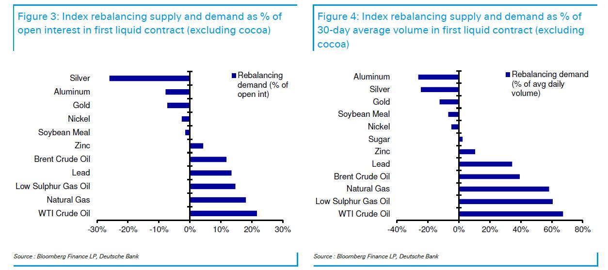 彭博大宗商品指数(BCOM)年度再平衡将于本周五启动,走势火热的白银面临大规模抛售压力。 据彭博数据,此次再平衡将黄金权重从20.4%下调至14.9%,白银也面临权重削减,权重将从9.6%降至3.94%,再平衡期将从1月8日盘后开始,并持续至14日 (再平衡执行日期1月9日-15日)。 彭博大宗商品指数采用年度再平衡机制,权重计算基于三分之二的交易量和三分之一的全球产量,并在商品、板块和组别层面设置权重上限。根据指数规 则,单一商品权重不得超过15%,以维持多元化。 | | | | | | Rebalancing demand (supply) | | --- | --- | --- | --- | --- | --- | | Group | Commodity | Ticker | 2026 Target Weight | Current Weight | as share of total index value | | Energy | Brent Crude Oil | CO | 8.36% | 5.51% | 2.85% | | Energy | Natural Gas | NG | 7.20% | ...