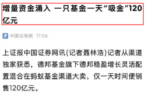 炒股就看金麒麟分析师研报,权威,专业,及时,全面,助您挖掘潜力主题机会! 公募基金联手"大V"吸金基民120亿,21年"日光基"要历史重演? 来源:保叔同路人 最近,德邦基金旗下的德邦稳盈增长基金火了,单日狂吸120亿资金。 要知道,这支""德邦某盈增长"在25年3季度末合并规模才7.24亿,仅仅一天,规模翻了16倍,按理说绩 优基不少,德邦凭什么一天"进账"120亿? 细细看这场吸金盛宴背后,不知不觉间"币圈"那一套已经慢慢杀到公募圈里来了.... 知情人士透露,这次德邦精准锁定了几个头部"大V",还开出了圈内堪称顶级的"带货费用"——销售总 规模千分之三的佣金比例。 这就意味着,大V的带货金额10亿,他本人就能赚到300万,在直播的氛围影响下,什么"不保证本 金"、"不保证收益"这种监管红线通通被"大V"踩得稀碎 与此同时,一位疑似德邦的"工作人员"也在圈子里发限购的小道消息,催生基民不抢就买不到的紧迫 感,诱导基民抢购。 直播全程只宣传收益,从不揭示风险。直接在直播间喊着"梭哈人工智能"的经典口号带粉丝"闭眼冲锋" 这手百万"大V"疯狂带单+德邦基金饥渴营销,最终造就了这场基圈的狂欢神话。 原本7亿规模 ...