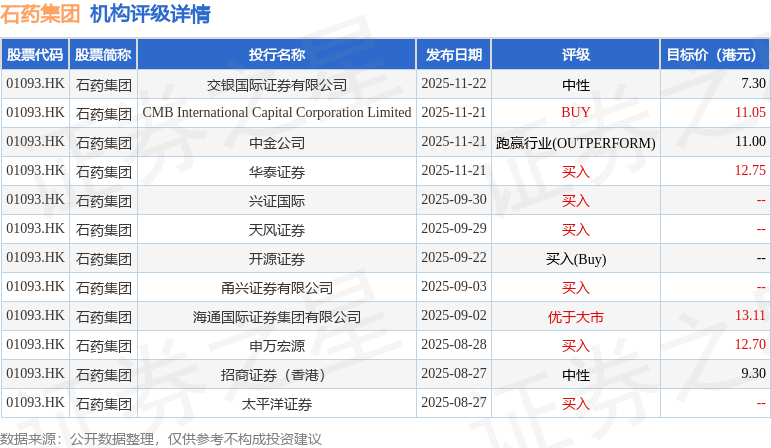 交银国际:下调石药集团(01093.HK)目标价至7.3港元 维持“中性”评级