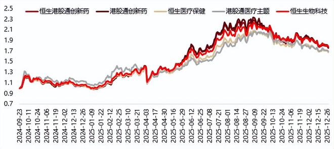 2024年9月24日以来,资本市场进入回暖上涨阶段,恒生生物科技指数累计涨幅达78.6%,跑赢港股通 创新药指数,展现出高弹性与高夏普比率的特征。 | | 恒生生物科技 | 恒生港股通创新药 | 港股通创新药 | 恒生医疗保健 | 港股通医疗主题 | | --- | --- | --- | --- | --- | --- | | 年化收益率(%) | 59. 42 | 57.50 | 59.07 | 51. 55 | 53. 41 | | 年化波动率(%) | 41.03 | 42.66 | 43. 50 | 39. 35 | 41.58 | | 最大回撤(%) | -27.55 | -27.35 | -27.08 | -28.51 | -30. 54 | | 夏普比率 | 1.45 | 1. 35 | 1.36 | 1.31 | 1.28 | | 累计收益(%) | 78. 64 | 75.97 | 78. 14 | 67.74 | 70. 29 | | 2025年以来收益(%) | 67. 50 | 66. 61 | 69.44 | 59.83 | 51. 12 | 数据来源:Wind,2025年以来数据 ...