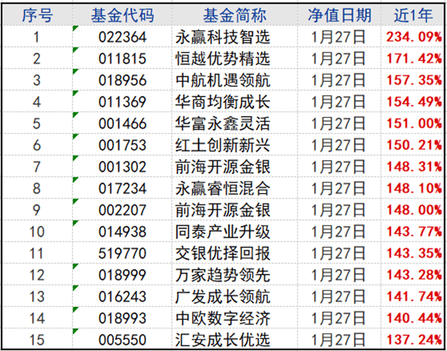 作者 |佳文 编辑 | 袁畅 公募基金最新一季的季报已经全部披露完毕。他们揭示的故事还远没有被充分挖掘。 在过去的2025年里,有大批的基金经理崛起,他们有的出自名门,有的在行业里已领跑多年,也有的是新晋崛起,有的完 全陌生。 他们或因能力、魄力抑或运气而冲上行业潮头,外界并不所知,但有一点,如此出色的表现,既有他们自身的主观努力, 也和2025年~2026年的" 超级成长行情"有关。 而随着他们的业绩上冲到行业榜前列,他们的投资风格和业绩原因,都格外值得关注。 01 谁是新来者? 根据choice对过去一年主动基金净值增长率的统计,截至1月27日,这个市场里有15只基金在过去一年内收益率超过137%。 其中,按基金经理角度,大概能划分为几类: 第一类,历史上曾经业绩比较突出过的,包括永赢瑞恒的高楠、广发成长领航的吴远怡、中欧数字经济的冯炉丹等。 第二类,产品类型特别突出,或是基金经理风格倾向特别突出的。典型是吴国清管理的前海开源金银、叶勇管理的万家趋 势领先、任桀管理的永赢科技智选等,前两者都专注有色和贵金属,后者典型是科技。 第三类,则是本文特别希望能够来分析的(当然很可能一篇是分析不完的),从产品名称看 ...