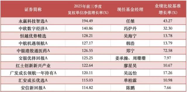 年内涌现53只“翻倍基”,2025年前三季度基金业绩放榜