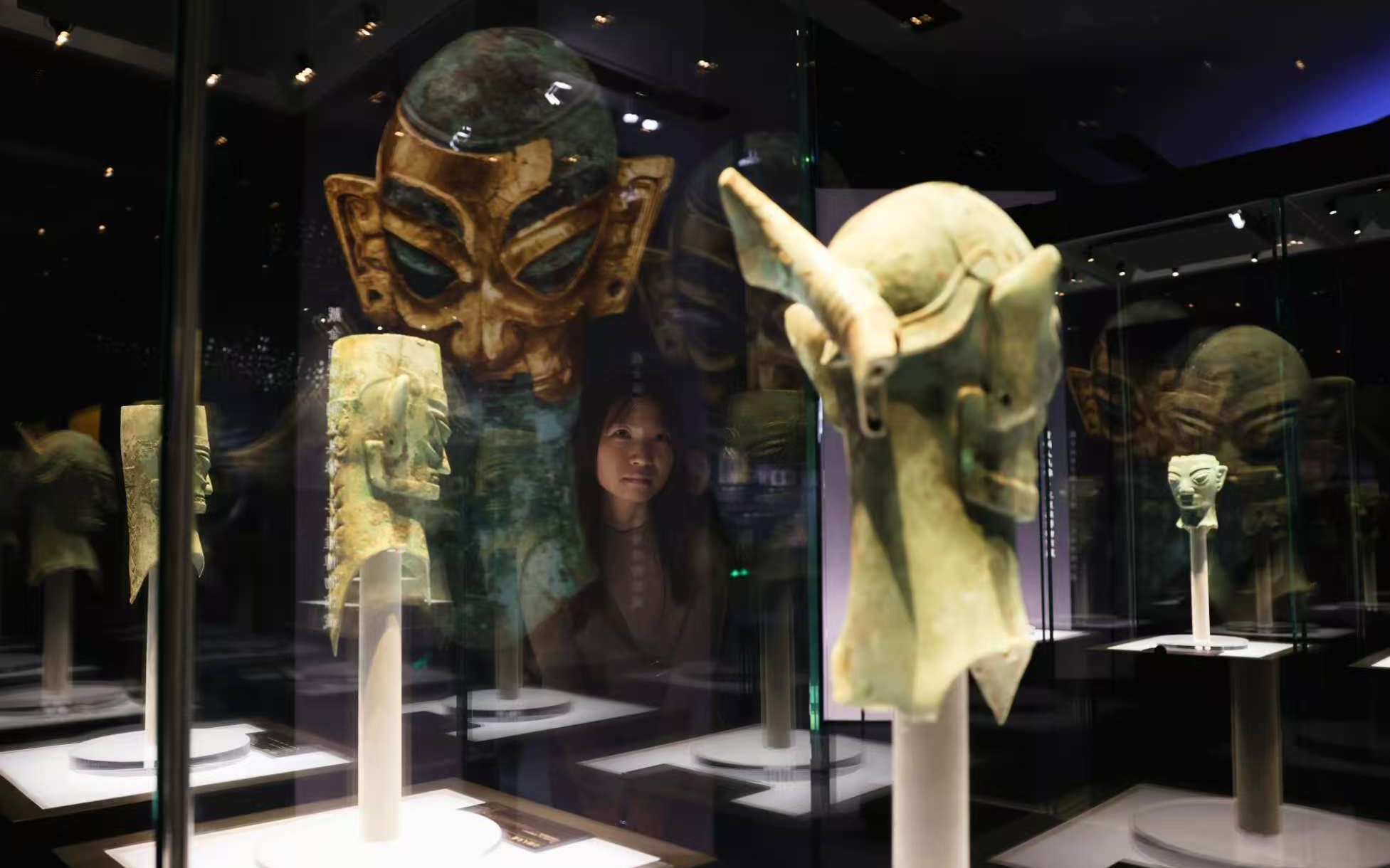 跨时空对话,三星堆—金沙遗址古蜀文明展亮相国博 戴冠纵目面具首次同台亮相