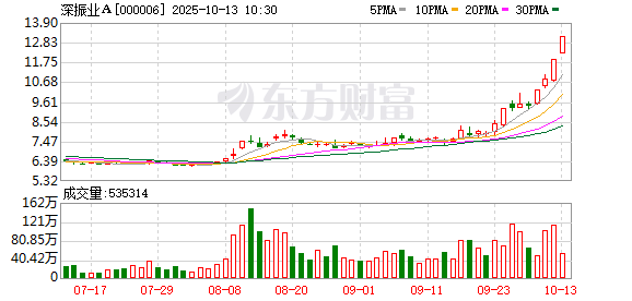 龙虎榜数据显示,该股因连续三个交易日内,涨幅偏离值累计达20%、日涨幅偏离值达7%上榜龙虎榜1 次,买卖居前营业部中,机构净买入1992.48万元,深股通累计净卖出65.38万元,营业部席位合计净买 入5205.96万元。 据天眼查APP显示,深圳市振业(集团)股份有限公司成立于1989年05月24日,注册资本134999.5046万人 民币。(数据宝) 近日该股表现 (文章来源:证券时报网) 深振业A再度涨停,4个交易日内录得3个涨停,累计涨幅为40.43%,累计换手率为23.57%。截至9:41, 该股今日成交量5141.10万股,成交金额6.63亿元,换手率3.81%。最新A股总市值达177.25亿元,A股流 通市值177.25亿元。 证券时报·数据宝统计,两融数据来看,该股最新(10月10日)两融余额为7.76亿元,其中,融资余额 7.75亿元,较前一个交易日增加5754.31万元,环比增长8.02%,近4日累计增加5550.04万元,环比增长 7.72%。 | 日期 | 当日涨跌幅(%) | 换手率(%) | 主力资金净流入(万元) | | --- | --- | --- | --- | | 202 ...