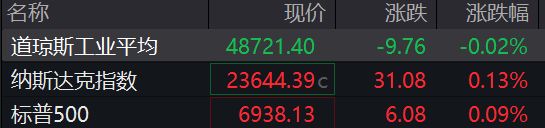 道指开盘涨0.04%,标普500跌0.01%,纳指跌0.01%