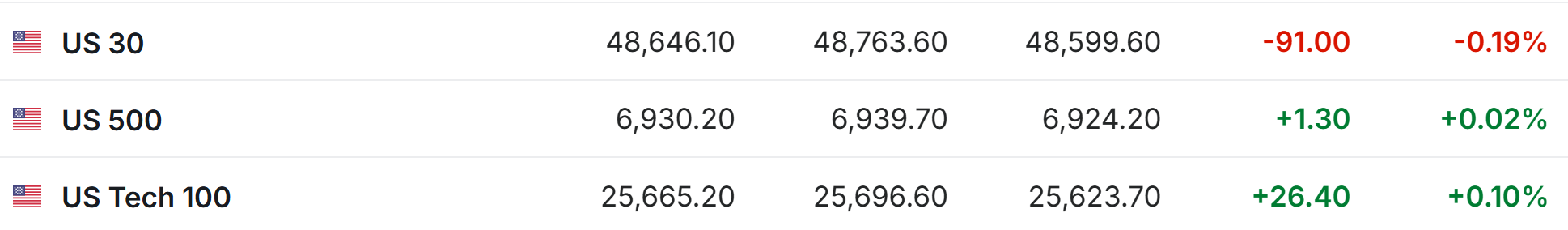 12月26日,美股三大指数开盘涨跌不一,道指跌0.02%,纳指涨0.13%,标普500指数涨0.09%。 太空概念股Sidus Space高开逾30%,盘初一度涨超50%,现涨近45%。 编辑丨瑜见 | 名称 | 现价 | 涨跌幅 涨跌 | | --- | --- | --- | | 道琼斯工业平均 | 48721.40 | -9.76 -0.02% | | 纳斯达克指数 | 23644.39c | 31.08 0.13% | | 标普500 | 6938.13 | 6.08 0.09% | 科技股多数上涨,闪迪涨超3%,美光科技、英伟达涨近1%。 中概股涨跌不一,纳斯达克中国金龙指数涨0.2%, 霸王茶姬跌超8%, 话题词"霸王茶姬 咖啡因"今日登上热搜; 叮咚买菜涨超5%。 Biohaven跌超10%,其抑郁症药物中期试验失败。 ...