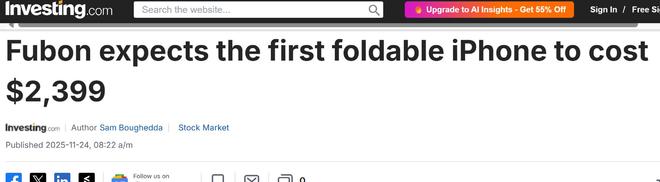 苹果首款折叠屏iPhone预计2026年推出,售价或为2399美元
