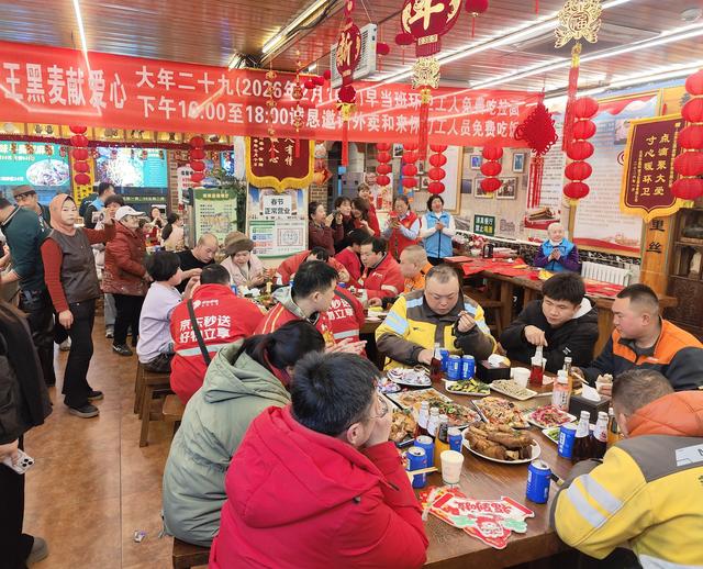 新鲜水果、拉面、卤羊蹄、手抓羊肉、牛肉丸子、小凉菜、糖果……除夕当天,阖家团圆、辞旧迎新, 位于怀柔区东关二区的兰州王黑麦拉面馆内也洋溢着喜庆、热闹的氛围,80多名环卫工人、外卖骑手、 快递配送员等新就业群体及家属在这里吃上了免费的年夜饭,共赴一场暖意融融的新春团圆宴。 "忙完能到这儿吃上热乎、美味的饭菜,真是太感谢了,让我感受到了家的温暖。"环卫公司清洁一队队 员毕中华说。 这场"怀柔一家人 城市奔跑者 共享年夜饭"主题活动,由怀柔区委宣传部、区社会工作部主办,兰州王 黑麦拉面馆协办。今年面馆老板王黑麦在1月1日到15日向环卫工人提供了1500张免费吃拉面的爱心卡 后,又在大年二十九推出为早班的环卫工人提供免费早餐,16点到18点为外卖小哥、快递配送员等新就 业群体及家属提供免费年夜饭活动,让"城市奔跑者"共赴团圆之约。 清晨6点半,走进兰州王黑麦拉面馆,只见面馆门口大红灯笼高挂,店内悬挂着红色灯笼等节日饰品, 墙上贴着崭新的福字,悬挂的红色横幅上写着"大年二十九早当班环卫工人免费吃拉面,下午16点至18 点诚恳邀请外卖和来怀打工人员免费吃饭"。店内4张桌子已经坐满,近30名环卫工人在完成清洁工作后 陆续到 ...