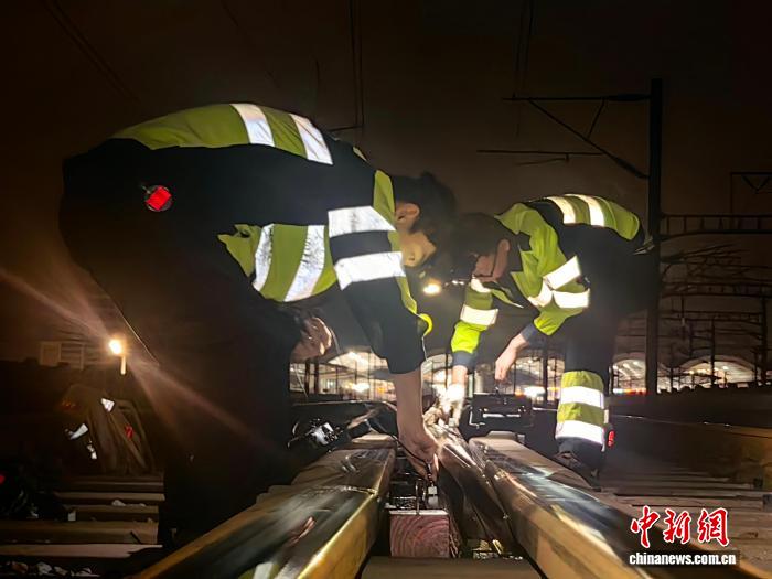 (新春走基层)深夜里的高铁轨道“体检师”