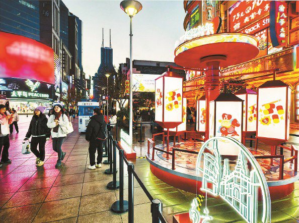 马年春节期间,上海将推出2570项特色活动,邀海内外游客共度中国年。图为夜幕下的南京路步行街, 卡通走马灯等民俗艺术装置烘托出马年迎新春氛围 杨建正 摄 >>>详见第3版 ...