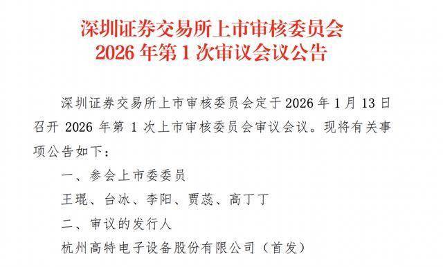 深交所2026年首单IPO过会!高特电子首发获得通过