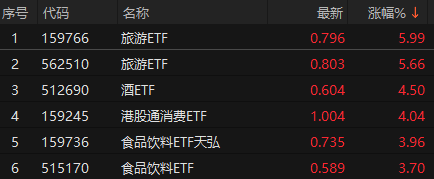 大消费领涨!旅游ETF、酒ETF、港股通消费ETF、食品饮料ETF涨超3%