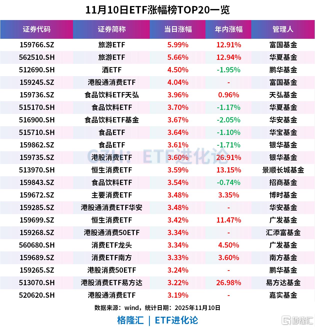 旅游ETF领涨;南向ETF通扩容今日生效丨ETF晚报