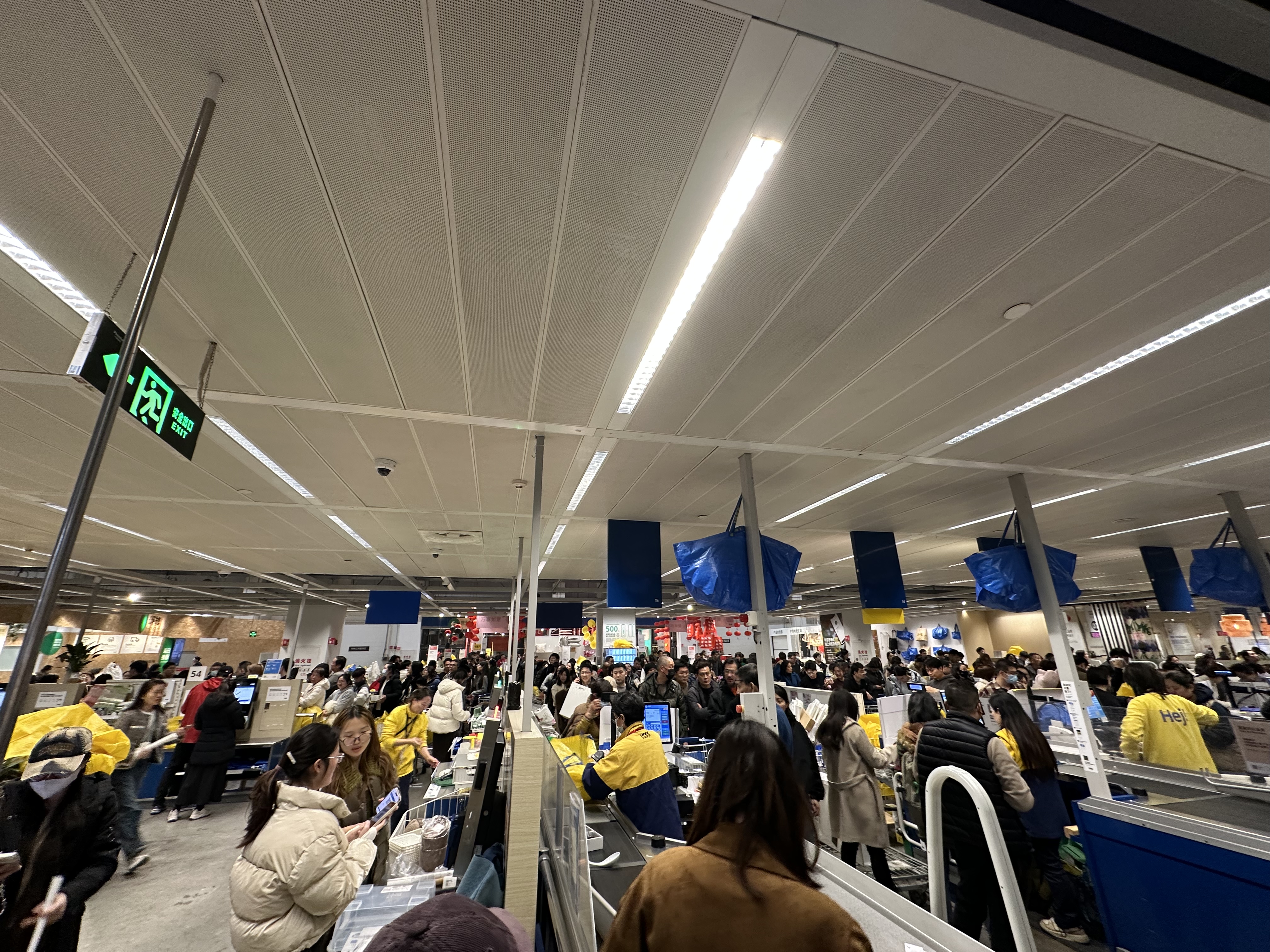 现场直击宜家关店清仓3折起售:大批客人涌入门店,排队2小时结账