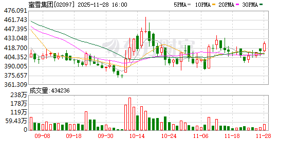 西部证券此前指,看好公司极致性价比背后的供应链运营能力,同时发挥协同效应扩张不同品类打开天 花板。建银国际表示,蜜雪集团今年上半年业绩超预期,尽管外卖补贴常态化,集团仍交出韧性业绩。 该行预计蜜雪冰城2025年下半年收入增长25.4%,净利润增长17%。 智通财经APP获悉,蜜雪集团(02097)盘中涨超3%,截至发稿,涨2.81%,报424.6港元,成交额9668.71 万港元。 消息面上,据21世纪经济报道,近日,有网友在社交平台上分享蜜雪冰城关于早餐调查的问卷,并发 文:蜜雪冰城要开始卖早餐了?还有部分网友晒出了早餐系列的产品截图,售价均为5元。记者从一位 接近蜜雪冰城的人士处了解到,目前"早餐计划"仅在大连、西安、南宁、杭州等城市进行部分试新,上 线产品包括早餐椰椰奶、早餐五红奶、早餐五黑奶、早餐玉米奶四款乳品。同时,目前暂时没有大面积 推广计划。 ...