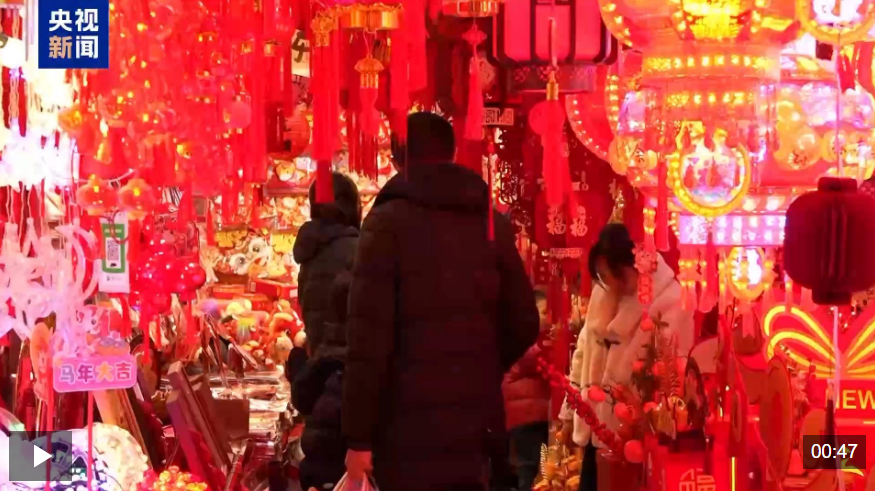 俗话说过了腊八就是年,随着春节的临近,各地的年货市场也热闹起来。 在重庆市渝中区,各个小商品市场陆续开启"年味模式",红灯笼高挂、中国结摇曳,各类融入马年元素的创意小商品,吸引了市民前来采购。 小商品销售旺 马年元素受追捧 0:00 走进渝中区的一个小商品市场,浓郁的节日氛围扑面而来。红灯笼串联起廊道,福字贴、生肖拉花相映成趣,耳畔不时传来商家"马到成功""马上有福"等吉 祥语的吆喝声。而市场里的马年主题商品区更是人气爆棚,从传统民俗饰品到新潮文创产品,品类丰富、创意十足,满足了不同年龄段消费者的需求。 0:00 在山东淄博市一家琉璃企业的生产车间,师傅们正忙着赶制琉璃马生肖作品。1400℃的高温下,琉璃料在吹制塑形中,逐渐勾勒出骏马的灵动身姿。今年, 企业以"马"为创意核心,将琉璃烧制技艺与传统生肖文化深度融合,推出十余款特色文创产品。 某琉璃制造有限公司营销部经理 孙倩:身上的纹路是祥云的经典设计,也是想给广大市民带来好的福运和吉祥。 生肖文创中,"马上快乐"系列琉璃摇摇马深受消费者的喜爱。这款产品以半圆造型勾勒出马身轮廓,形似彩虹的弧线,既蕴含圆满之意,又带着几分童趣。 据商户介绍,马年商品上架以来,销 ...