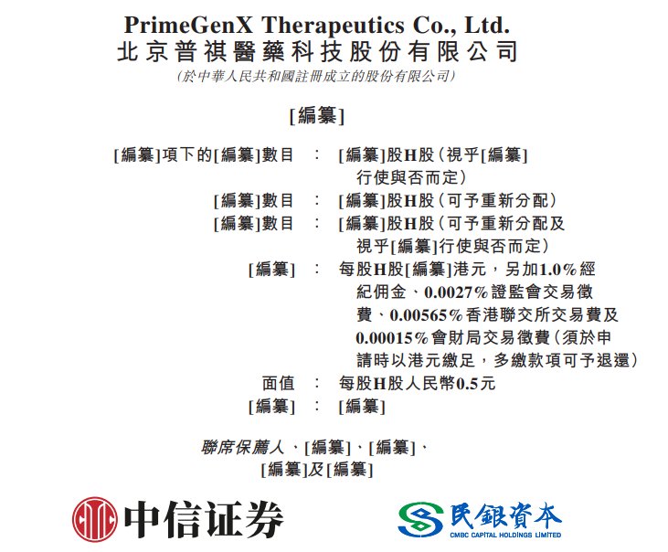 普祺医药递表港交所 中信证券和民银资本担任联席保荐人