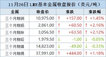 期铜突破11000美元大关,受助于美国降息概率提高【11月26日LME收盘】