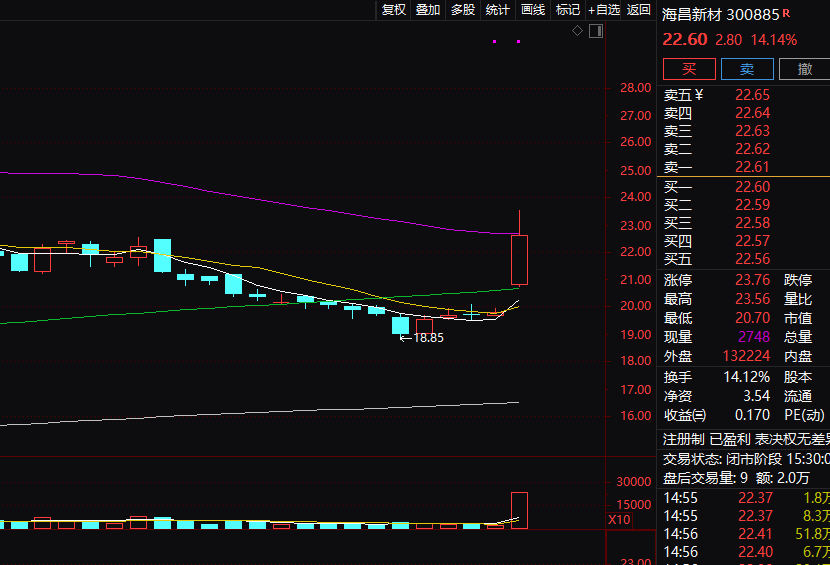 今天(11月28日)A股市场主要指数低开高走,主要指数不同程度上涨,截至收盘,逾4000股上涨。具体个股方面表 现也比较活跃,多只A股午后强劲拉升,同时成交额激增。 港股市场今天整体小幅下跌,恒生指数收盘跌0.34%,机器人概念大涨。 A股海南自贸区概念大涨 多股午后扩大涨幅 今天A股市场个股表现活跃,截至收盘,全市场逾4000只个股上涨,不少个股午后拉升。 海昌新材(300885)午后快速拉升,盘中涨幅一度接近19%,后涨幅有所回落。成交方面,海昌新材今天全天成交超 过5亿元,是上一交易日的10倍以上。 思林杰午后扩大涨幅,盘中涨幅一度超过9%,至收盘仍大涨8.26%。与此同时,思林杰成交也出现放量,全天成交 1.14亿元,是上一交易日的3倍以上。 今天A股市场主要指数低开高走,主要指数不同程度上涨,截至收盘,上证指数涨0.34%,深证成指涨0.85%,创业板 指涨0.7%。 盘面上,若按照申万一级行业划分,农林牧渔板块领涨,板块整体涨幅超过1.5%。 基础化工、钢铁、有色金属、电子等板块跟涨,涨幅均超过1%。 银行、煤炭板块走弱,成为少数下跌的板块。 概念板块方面,海南自贸区概念午后涨幅扩大,表现抢眼,海 ...