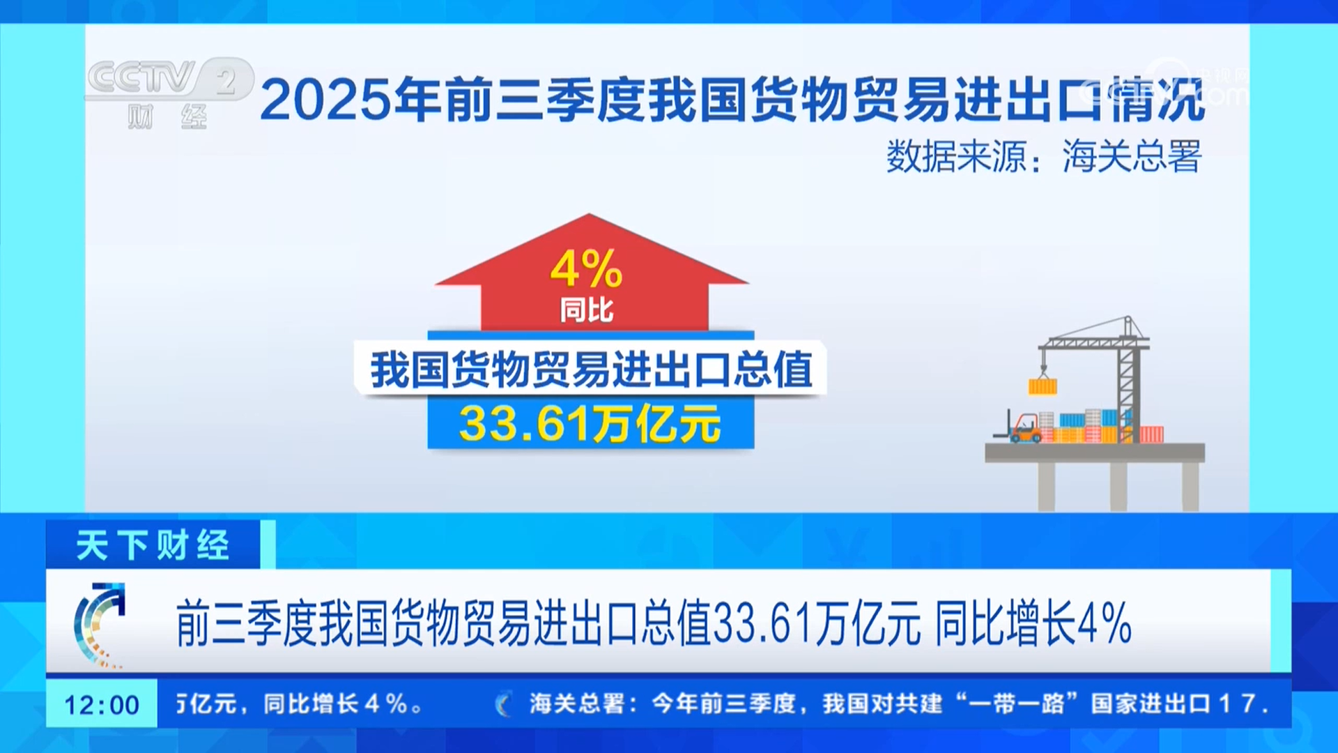 海关总署:前三季度外贸进出口33.61万亿元,同比增长4%