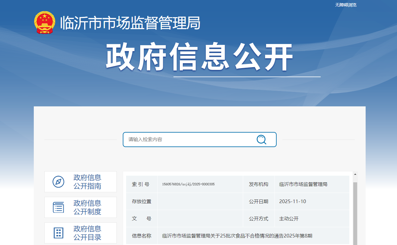 山东省临沂市市场监督管理局关于25批次食品不合格情况的通告2025年第8期