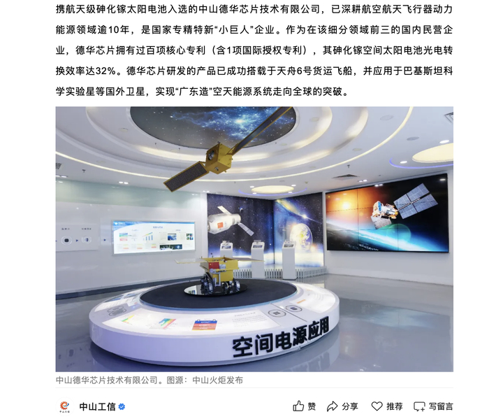 对此,公司回复称,中山德华芯片技术有限公司成立于2015年,为公司实控人家族控制的企业,属于公 司关联方,业务聚焦于空间太阳电池、柔性太阳电池等产品,具备材料、外延片、芯片、空间能源系统 全产业链研制能力。 对于持股情况,公司未直接回应,但表示未来公司将根据集团战略、行业发展、经营布局等因素综合考 虑相关业务布局和推进。 据中山网1月6日报道,中山德华芯片技术有限公司入选了2025年广东省省级制造业单项冠军企业名单。 作为在该细分领域前三的国内民营企业,德华芯片砷化镓空间太阳电池光电转换效率达32%。德华芯片 研发的产品已成功搭载于天舟6号货运飞船,并应用于巴基斯坦科学实验星等国外卫星,实现"广东 造"空天能源系统走向全球的突破。 或是受相关消息提振,明阳智能股价在2026年元旦开市后率先一步"抢跑"。Choice数据显示,今年1月5 日至12日区间内,公司股票累计涨跌幅达到35.91%。在1月12日发布公告前的当天,公司股价录得涨停 板。 明阳智能风电整机制造板块包括大型风力发电机组及其主要核心部件研发、生产、销售等业务。据中国 可再生能源学会风能专业委员会发布的统计数据,2024年公司以1229万千瓦的风 ...