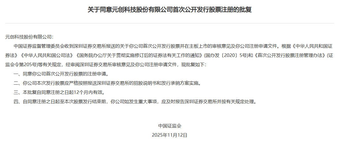 Core Viewpoint - Yuan Chuang Technology Co., Ltd. has submitted its IPO registration to the Shenzhen Stock Exchange, aiming to raise approximately 485 million yuan for various projects [1]. Company Overview - Yuan Chuang Technology specializes in the research, production, and sales of rubber track products, including rubber tracks for agricultural machinery, engineering machinery, and rubber track plates [1]. - The company's products are essential components for tracked machinery, with applications in agriculture and engineering construction [1]. IPO Timeline - The IPO application was accepted on June 26, 2023, and entered the inquiry stage on July 18, 2023. The company received approval on September 19, 2025 [1]. Fundraising Purpose - The funds raised from the IPO will be allocated to the construction of production bases, the establishment of a technology center, and to supplement working capital, in that order of priority [1].