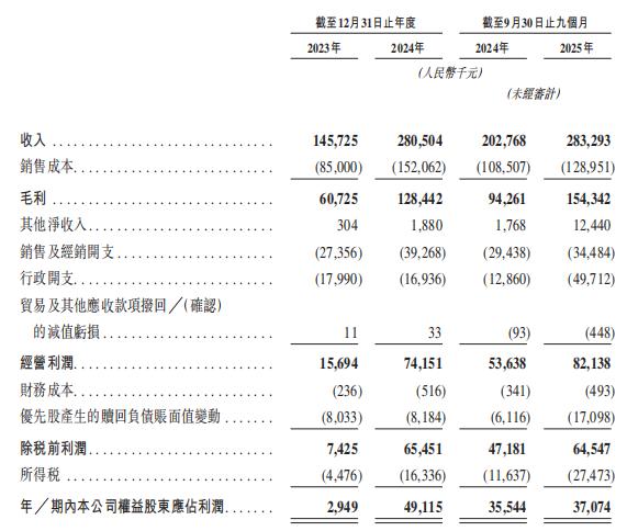 2026新年伊始,又有一家潮玩赛道创业公司申请上市。1月1日,香港联合交易所披露了Suplay集团的招股书。 2023年、2024年与2025年前九个月,Suplay的收入分别为人民币1.457亿、2.805亿、2.833亿元,对应净利润分别为294.9万、4911.5万、3707.4万元。 | | 截至12月31日止年度 | | 截至9月30日止九個月 | | | --- | --- | --- | --- | --- | | | 2023年 | 2024年 | 2024年 | 2025年 | | | | (人民幣千元) | | | | | | | (未經濟計) | | | 收入 | 145,725 | 280,504 | 202,768 | 283,293 | | 銷售成本 | (85,000) | (152,062) | (108.507) | (128.951) | | 毛利 | 60.725 | 128.442 | 94,261 | 154,342 | | 其他淨收入 | 304 | 1.880 | 1.768 | 12,440 | | 銷售及經銷開支 | (27.356) | (39.268) | ...