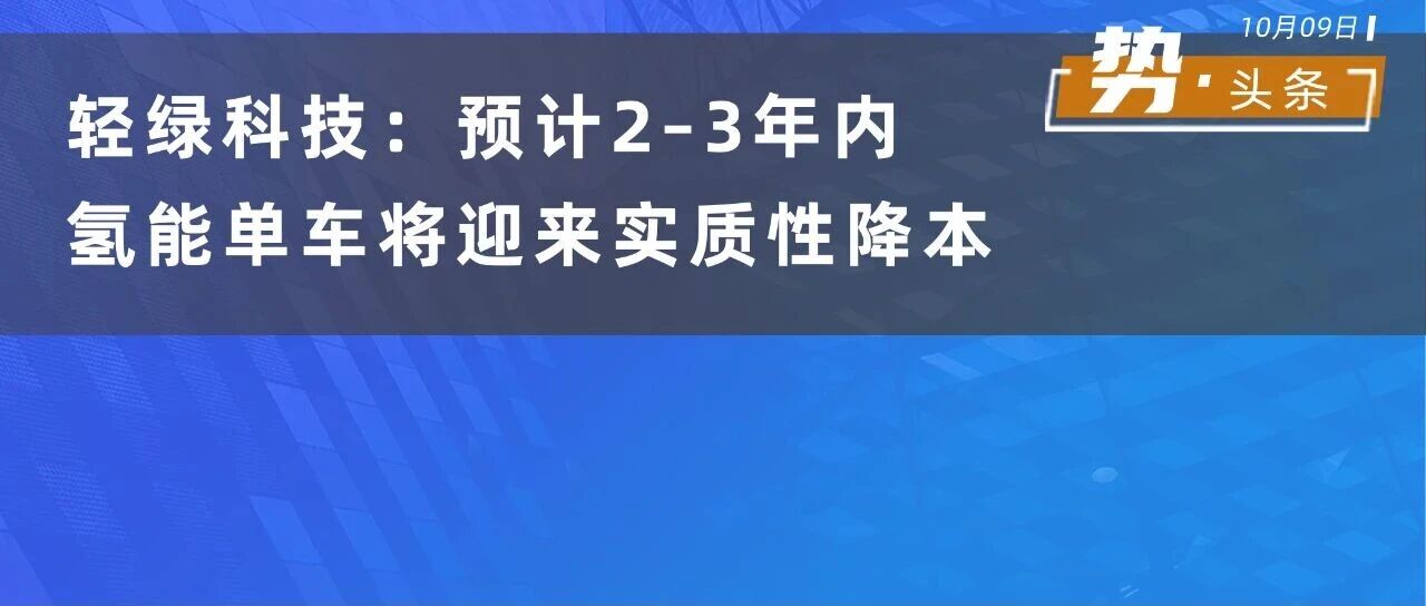 轻绿科技:预计2–3年内氢能单车将迎来实质性降本 | 势银调研