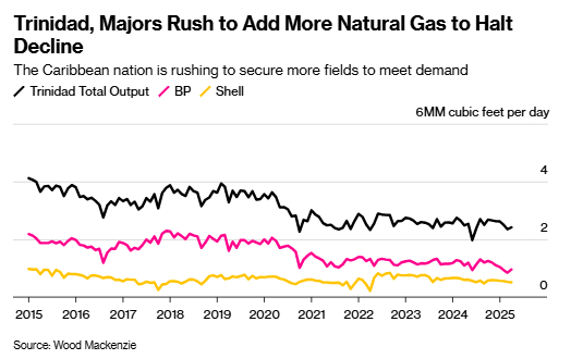 上述待开发的Dragon气田位于委、特两国之间的浅海区域。该项目投产后,将为特立尼达天然气供应短 缺的液化天然气(LNG)综合体及石化工厂补充原料。特立尼达是液化天然气、氨及其他天然气衍生产品 的重要出口国。 壳牌许可证的即将获批,揭示了美国政府对待委内瑞拉的双轨策略:一方面,美国军舰在委内瑞拉沿海 部署,美军战机对涉嫌运毒的船只实施轰炸;另一方面,石油公司高管与特立尼达官员穿梭于华盛顿、 加拉加斯(委内瑞拉首都)和西班牙港(特立尼达和多巴哥首都)之间,力图重启天然气合作计划。 据知情人士透露,壳牌(SHEL.US)正准备重启委内瑞拉某海上天然气田的前期工作,以期向邻国特立尼 达和多巴哥供应天然气。这表明该公司对特朗普政府将签发新许可证、使该项目免遭制裁的信心日益增 强。 Dragon气田距离壳牌位于特立尼达沿海的Hibiscus钻井平台仅数英里之遥。 今年4月,白宫撤销了在委内瑞拉的油气项目许可,试图以此加大对该国的施压——特朗普政府将委内 瑞拉视为贩毒集团的庇护所。而Dragon气田正是特朗普政府政策转向前,委、特两国曾合作推进的多个 海上天然气项目之一。 知情人士表示,今年7月,美国政府已向雪佛龙(CV ...