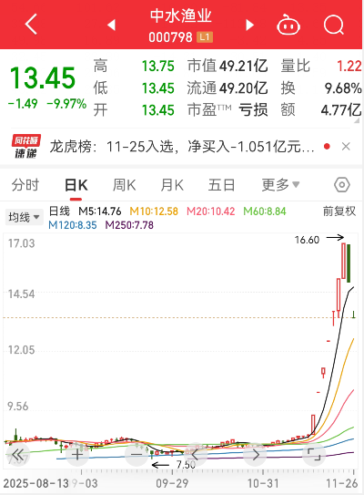 股价七连板,中水渔业:存在大幅上涨后回落的风险