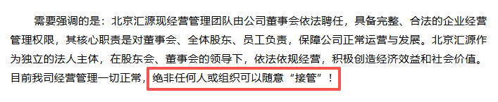 北京汇源:目前公司经营管理一切正常,绝非任何人或组织可以随意“接管”