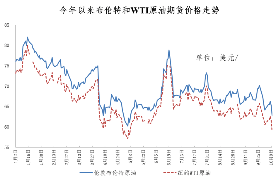 调价周期内,主要受伊拉克恢复原油出口、美国政府停摆、地缘冲突演变、中美经贸摩擦等因素影响,国际油价震荡下行。另一方面,乌克兰发动无人机 袭击导致俄罗斯供应减少,"OPEC+"11月计划增产幅度低于预期等,为油价提供了一定支撑。 国家发展改革委价格监测中心:后期国际油价将呈弱势震荡走势 央视财经记者从国家发展改革委了解到,受国际油价震荡下行影响,国内汽柴油价格将于10月13日24时下调。据国家发展改革委价格监测中心监测,本轮 成品油调价周期内(9月23日—10月11日)国际油价呈震荡下降走势。 从10月13日24时起,国内汽、柴油每吨分别下调70元和75元,全国平均来看,92号汽油、95号汽油和0号柴油每升均下调0.06元。 央视财经记者给您算了一笔账,用92号汽油加满50升的油箱将少花3元。 国家发展改革委价格监测中心认为,全球原油市场将继续维持供应宽松格局,后期国际油价将呈弱势震荡走势。地缘政治局势变化将放大油价波动,需重 点关注巴以停火执行情况,美国对伊朗制裁政策,以及中美经贸摩擦演变对原油市场的影响。 来源:央视财经 ...
