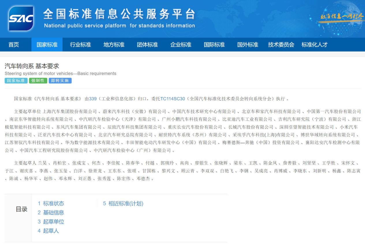 GB17675-2025《汽车转向系 基本要求》国家认证标准发布 由多家车企联合起草