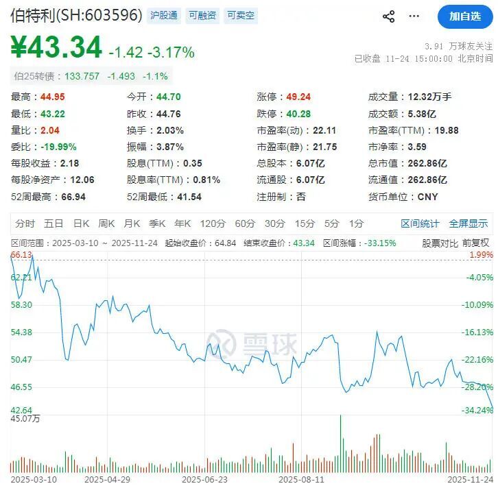 Core Viewpoint - MSCI announced the index review results for November 2025, with Berteli being removed from the index due to objective quantitative indicators such as market capitalization and liquidity [1] Group 1: Company Performance - Berteli's stock price has experienced significant fluctuations, closing at ¥43.34 on November 24, down over 30% from its yearly high [2] - The company reported a revenue growth of 27.04% year-on-year for the first nine months of 2025, with 413 new project approvals, representing a 37.21% increase [3] Group 2: Business Operations - Berteli's main business includes brake systems, steering systems, suspension systems, lightweight solutions, and intelligent driving systems, with recent expansions into humanoid robotics [3] - The company has completed its layout for screw and motor technologies in the new robotics sector [3] Group 3: Legal Issues - Berteli has filed a lawsuit against former executives for intellectual property infringement, which has garnered market attention [3] - The lawsuit involves five patents that Berteli claims were obtained through the misuse of its core technology secrets by former employees who established new companies after leaving [5]