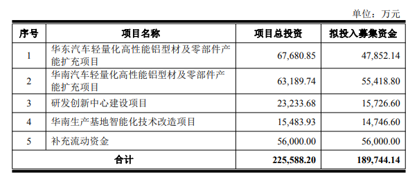 豪美新材:拟募资不超18.97亿元 用于华东、华南汽车轻量化高性能铝型材及零部件产能扩充项目等
